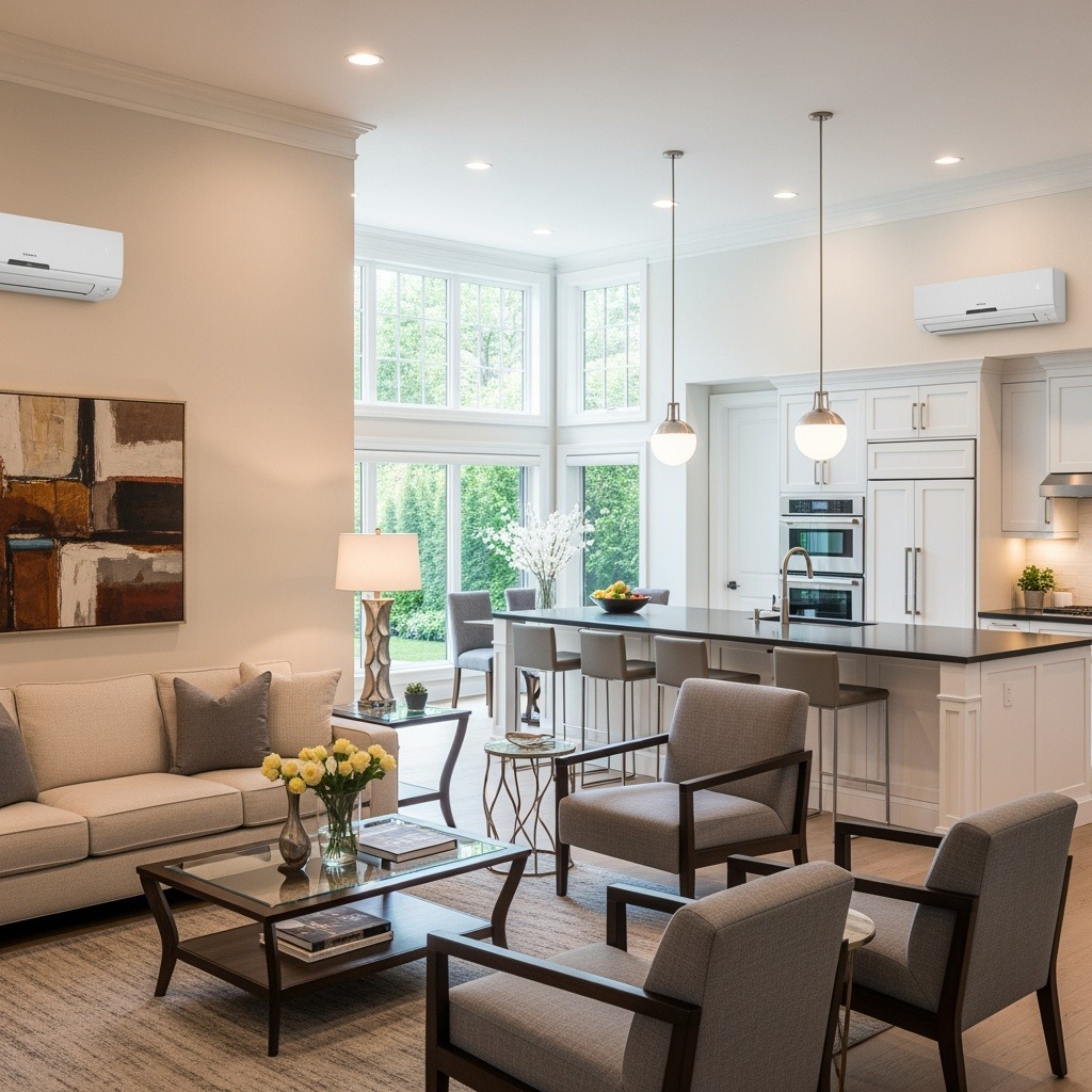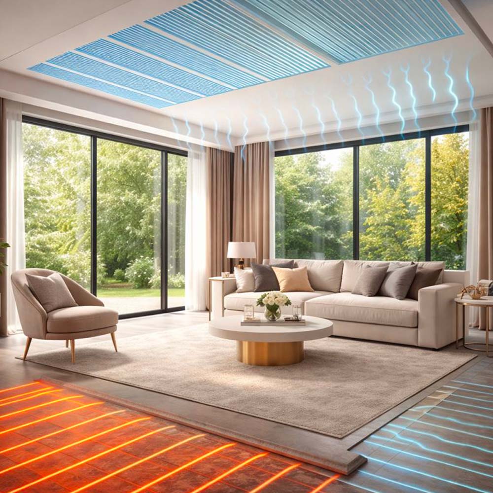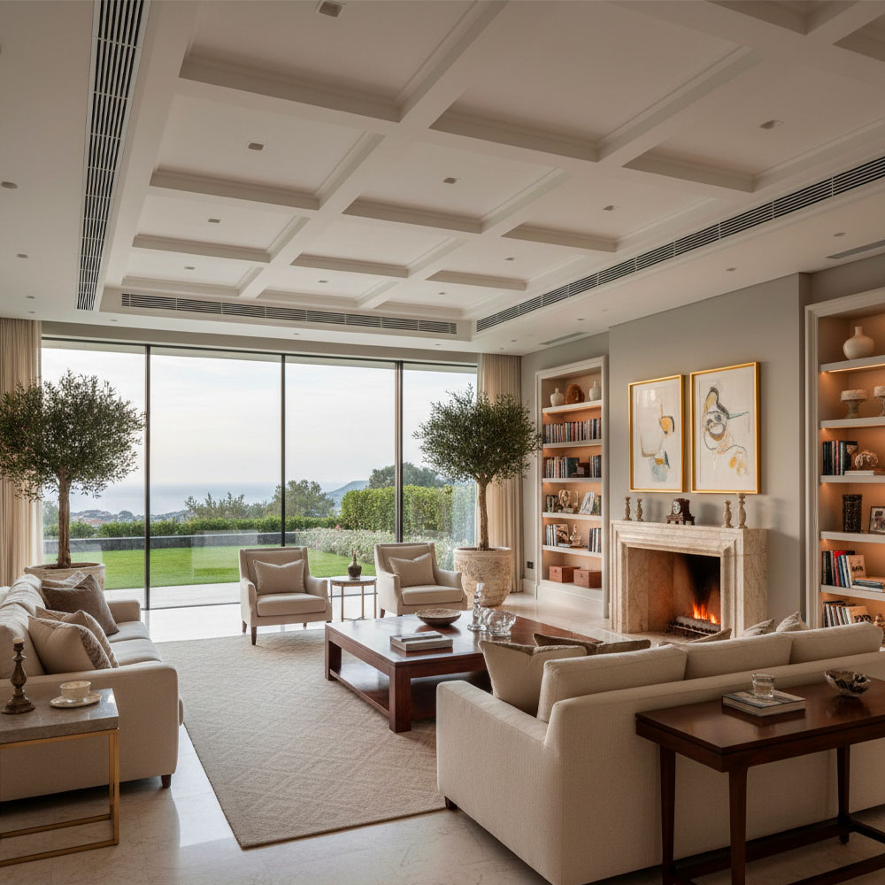 Impianto discreto e potente per la climatizzazione uniforme degli spazi. Ideale per abitazioni e uffici, assicura comfort elevato e massima integrazione architettonica.