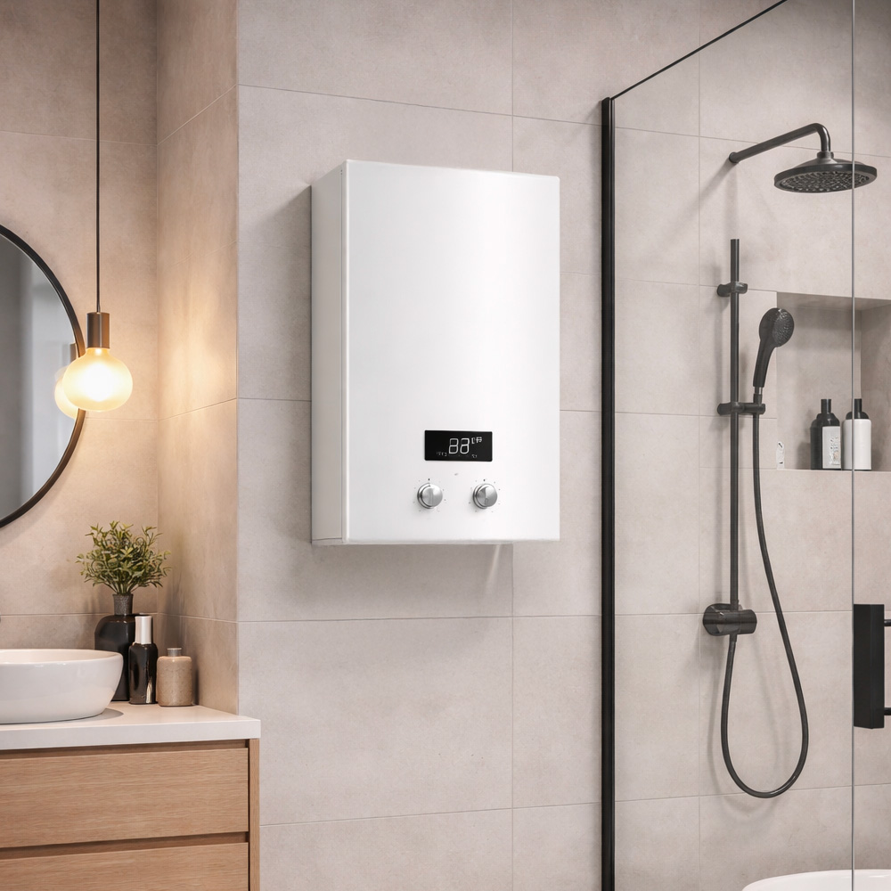 Dispositivo pratico per la produzione di acqua calda sanitaria. Assicura comfort quotidiano, facilità di installazione e affidabilità per l’uso domestico.